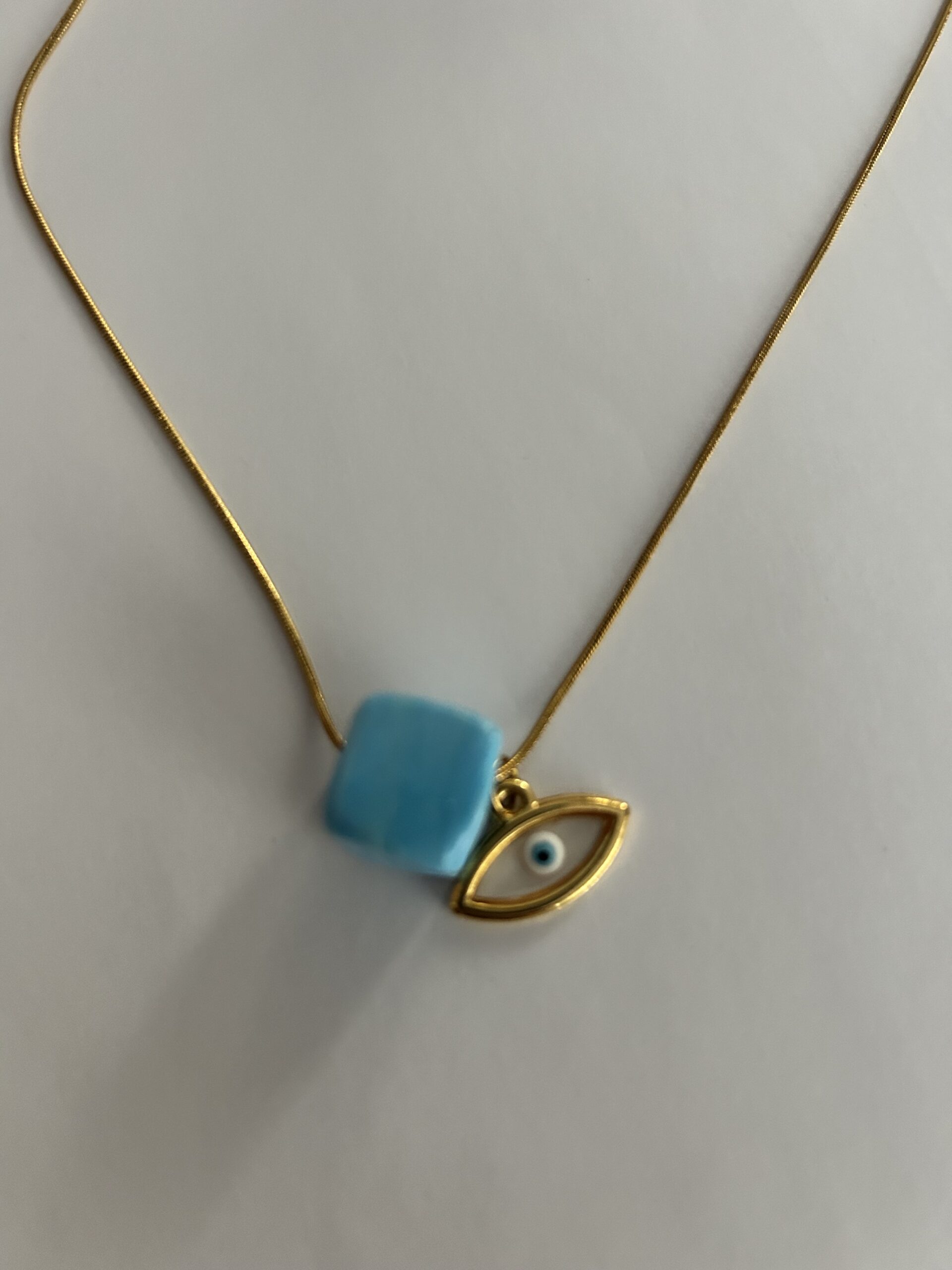 Όμορφο κολιέ σε αλυσίδα με ματάκι και κύβο γαλάζιο !