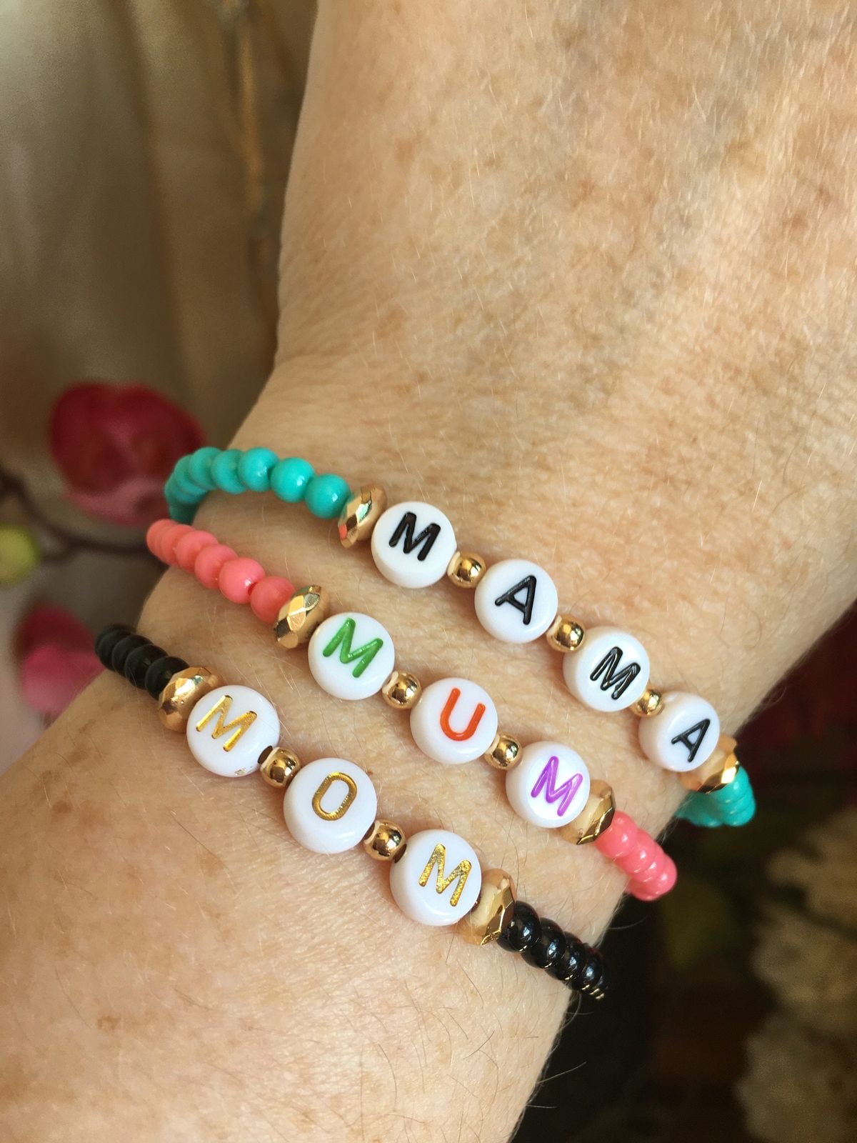Σετ από τρία βραχιόλια mama,mum,mom