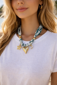 Μπαντάνα κολιέ με επίχρυσα στοιχεία